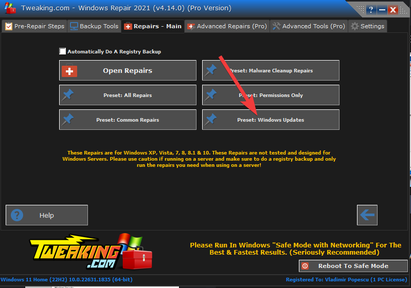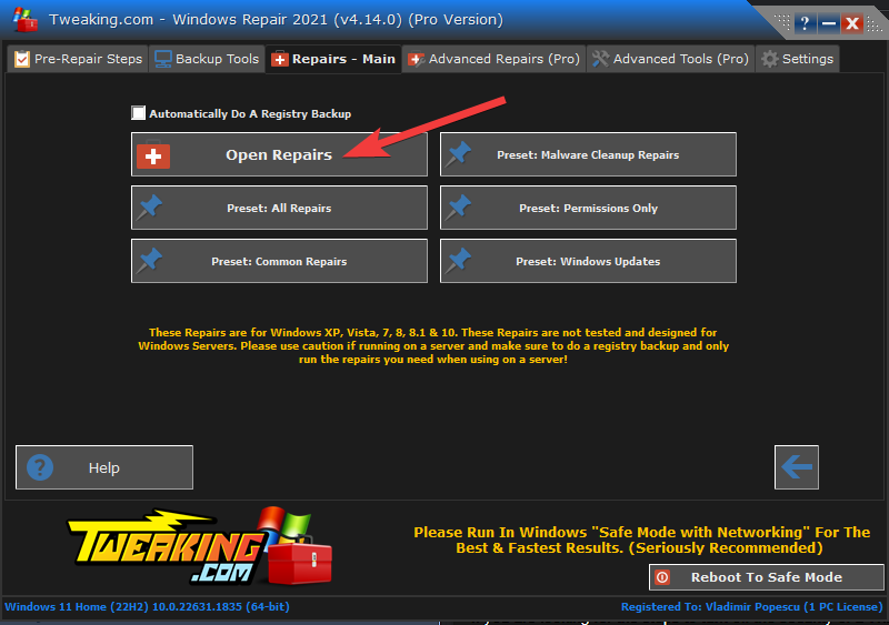 5. Use Tweaking Repair
