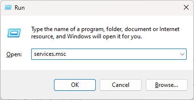 2. Type services.msc in the dialog box and press Enter.