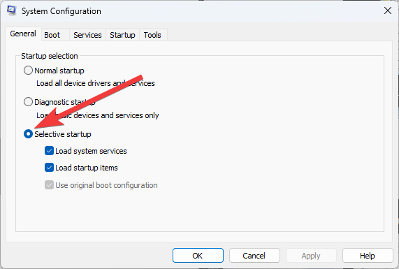 2. Click on the Selective Startup option.
