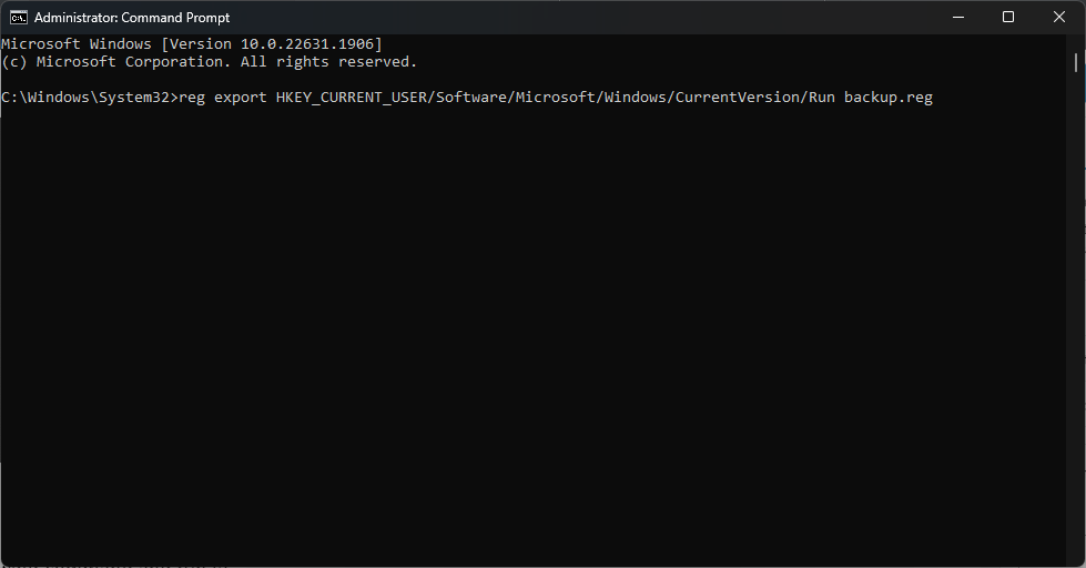 Inside the Command Prompt, type the following command and run it: reg export