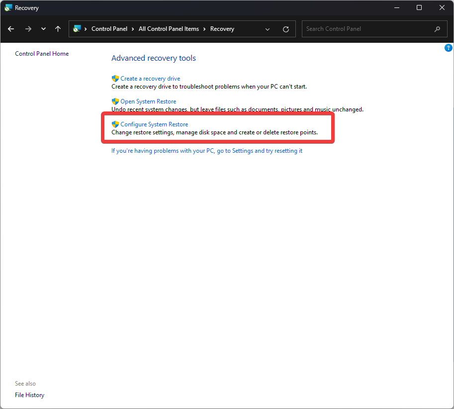 5. The Volume Shadow Copy Service used by System Restore is not working