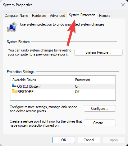 4. Click the Configure button, ensure that the Turn on system protection option is selected, and click OK.