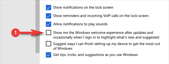 - Toggle the button off for the option Show me the Windows welcome experience.
