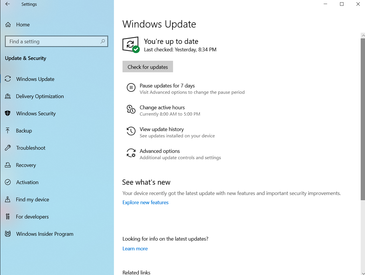 - Choose Update & Security, and click on Windows Update from the left sidebar.