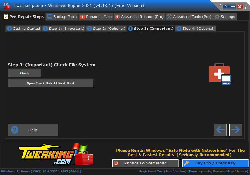 - Repair Windows Safe Mode: Fixes any files or settings in Windows Safe Mode that may have become corrupted or missing.