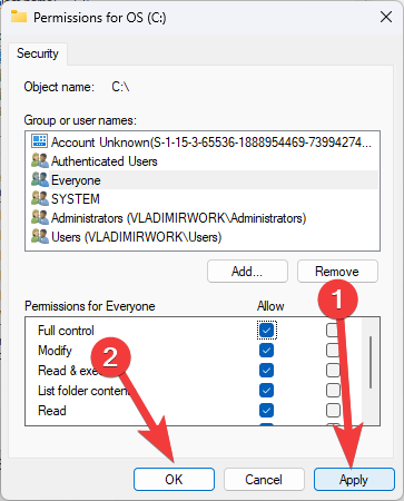 - Wait for Windows to apply the changes to the folder and its subfolders and files.