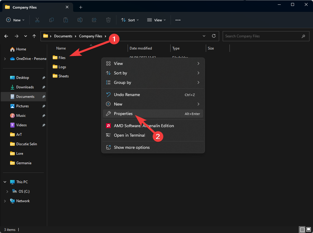 - Right-click on the folder and select Properties.