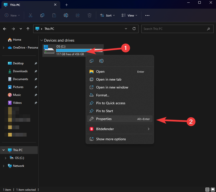 - Right-click on the partition and select Properties from the context menu.