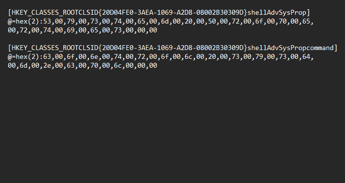 [HKEY_CLASSES_ROOTCLSID{20D04FE0-3AEA-1069-A2D8-08002B30309D}shellAdvSysPropcommand]