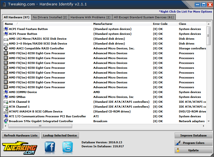 Here is where the useful Tweaking – Hardware Identify tool comes into play. Using this app ensures that all the devices from your Device Manager will have the perfect driver installed, allowing you to identify the specific type before downloading any drivers.