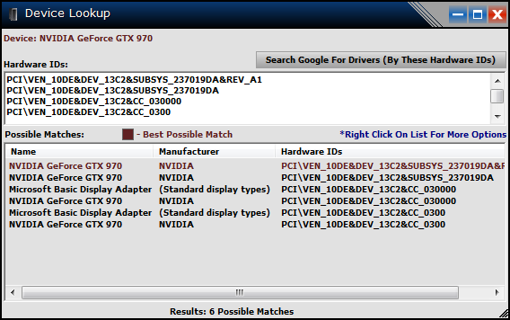 - Complete redesign of the device database. The program uses a normal text file and loops through to find your device. While this worked fast, searching for your hardware would take around 5 to 10 secs. As the device database grows, that would become slower and slower. I have redone the database into a proper file and set it up to ensure nothing is duplicated to help keep the size down. While the new database does make for about a 15% larger file, it now gives me the proper method to do searches in the database. Now pulling up your hardware from the database is nearly instant 😀