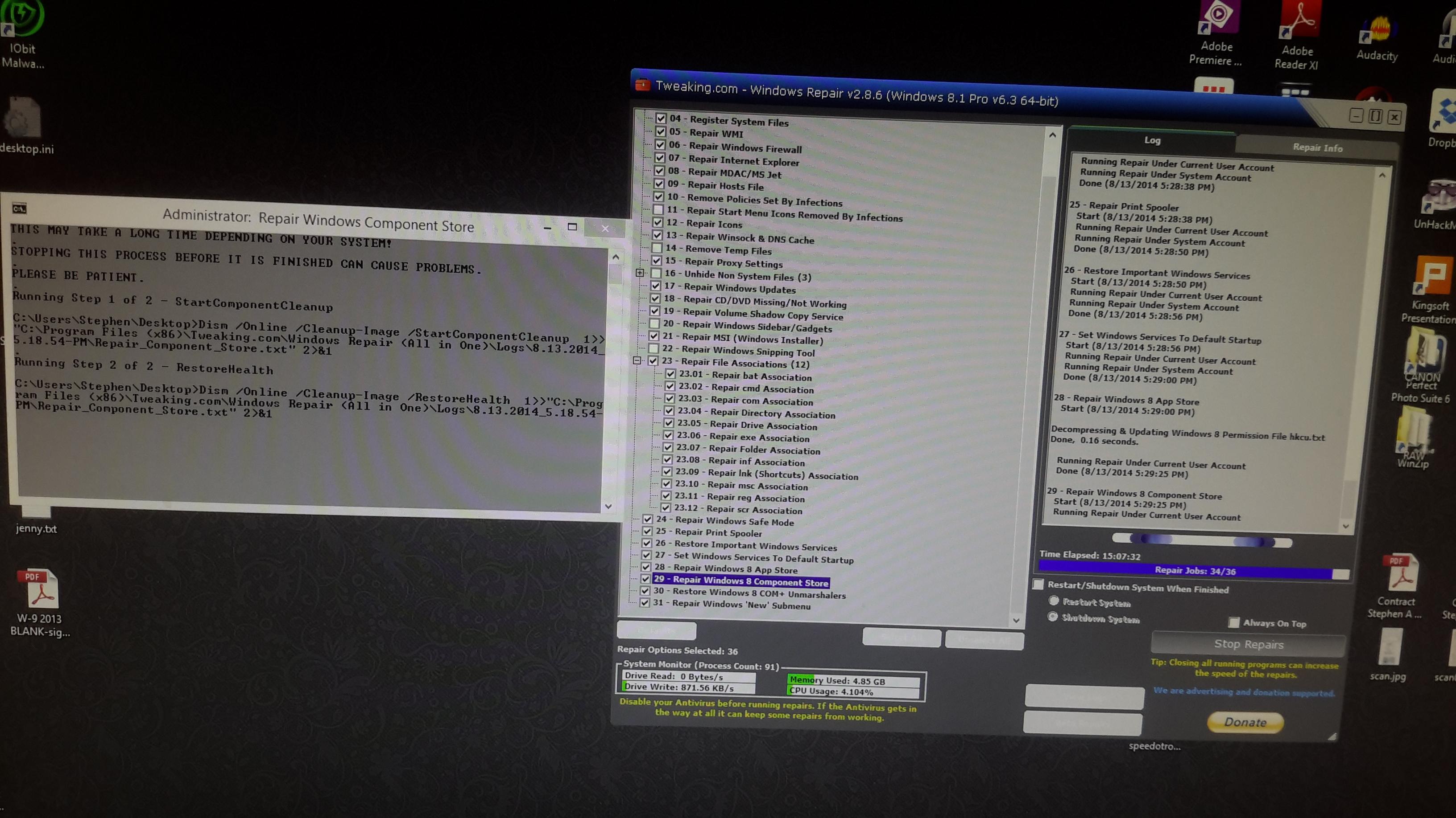 But I have seen that command in Windows do that. You will see the cpu and drive are being used, so it is working. The program simply calls DISM in windows to cleanup the competent store. I think MS has bugs in it, because when I run it for the first time on a system it only takes about 5 or 10 min. Then if I run the same command on the same system a 2nd time it takes over an hour.