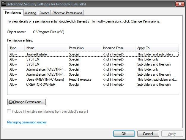 • Check "Program Files (x86)" folder permissions and it's reset to default (set attachment)