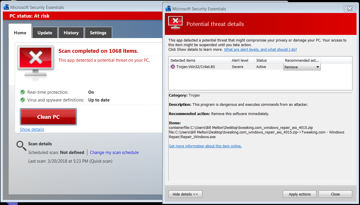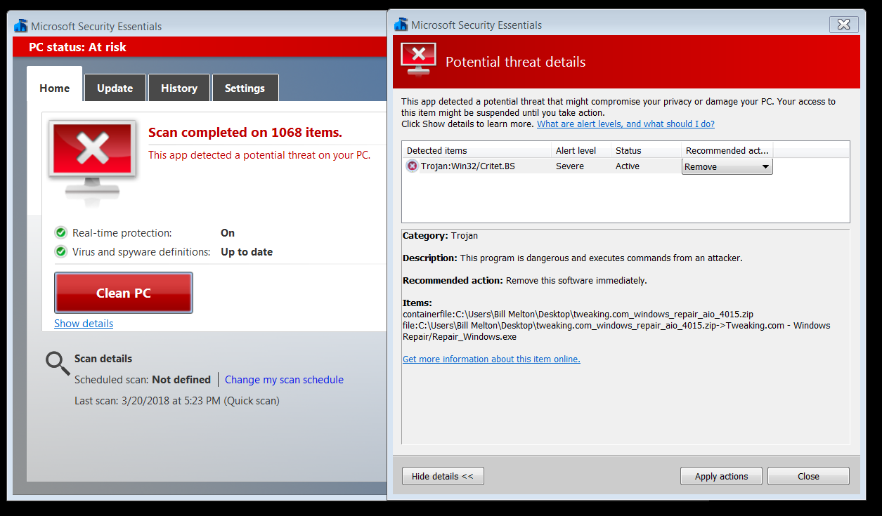 Author Topic: Trojan:Win32/Critet.BS - False positive from Defender?  (Read 205279 times)