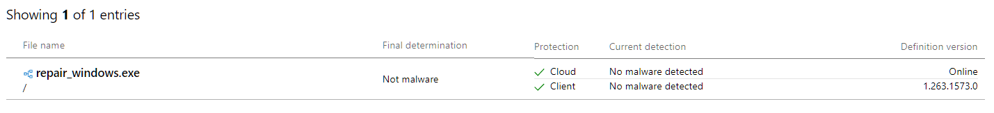 I JUST updated to the latest 1.263.1584.0 def from Microsoft  and it is showing as clean. Finally!