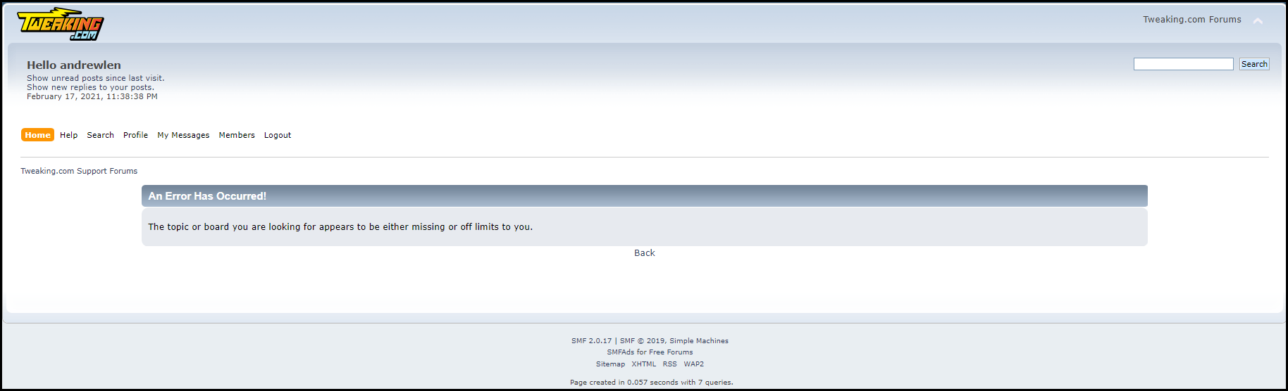 The topic or board you are looking for appears to be either missing or off limits to you. (See attachment Snapshot-2)
