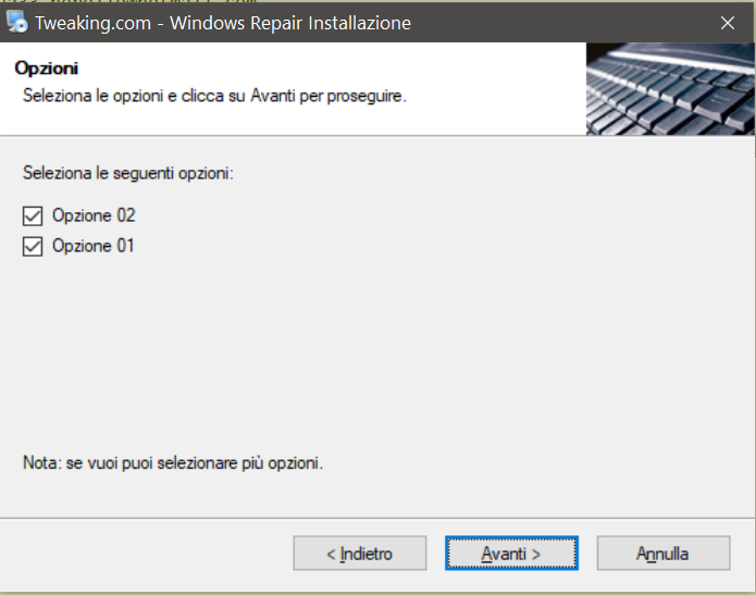 The italian translation included in "tweaking.com_windows_repair_aio_setup.exe" installer doesn't have the proper options descriptions at the end of the installation (Opzione 02 and Opzione 01, as shown in the following attachment).