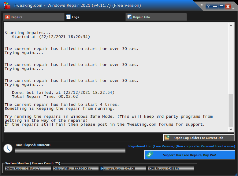 repair keeps failing