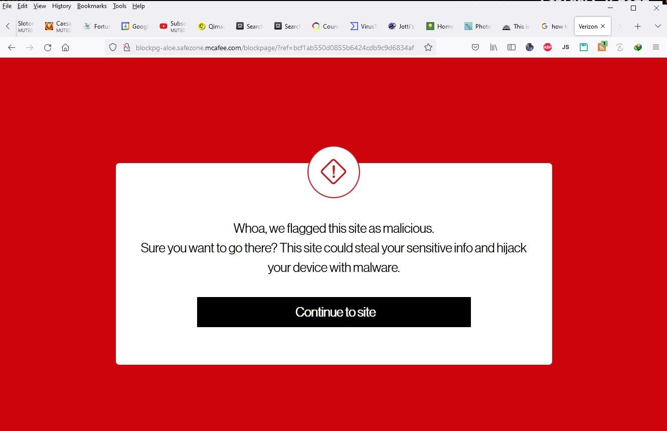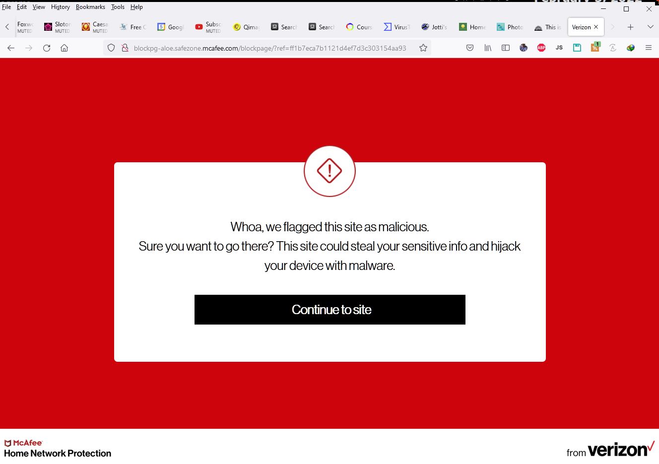 However, my internet provider is Verizon, and they (with McAfee) label your website as malicious and I have to manually over-ride the exception.