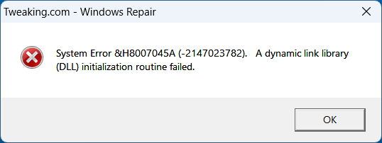 On Windows 11, am getting this error when attempting to start "Tweaking.com - Windows Repair".