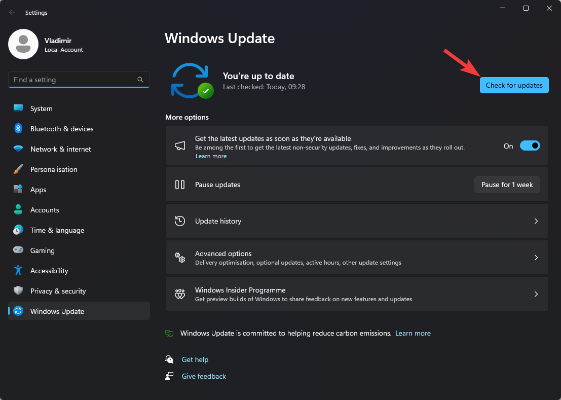 - Open the Windows Update app, and click Check for Updates.
