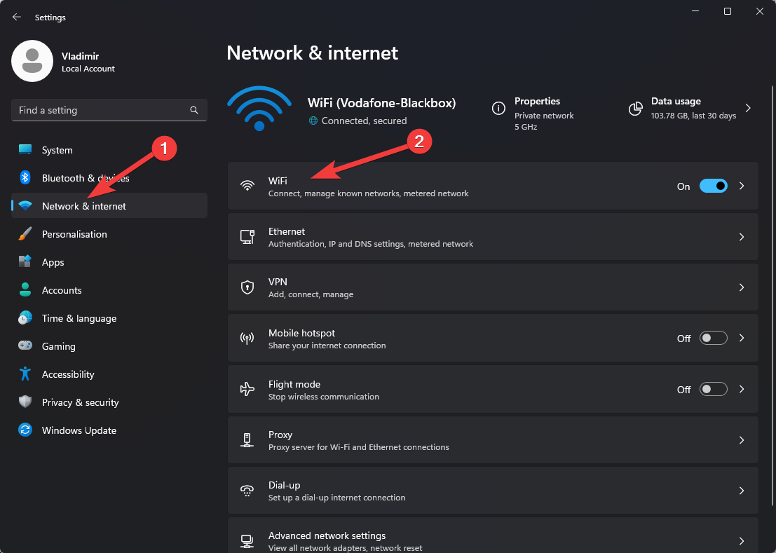 - Open Network & Internet, and click Ethernet or Wi-Fi, depending on your connection.
