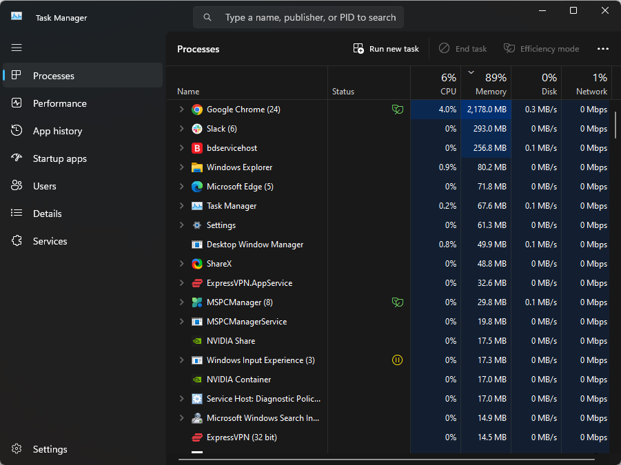 - Press the Ctrl + Shift + Esc key combination to open the Task Manager.