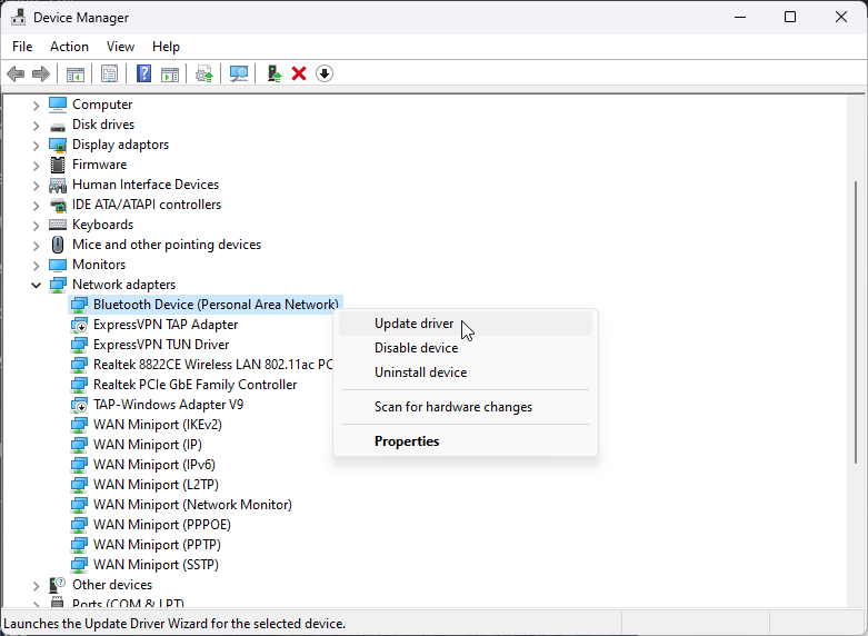 - Navigate to the Network adapter section inside the Device Manager.