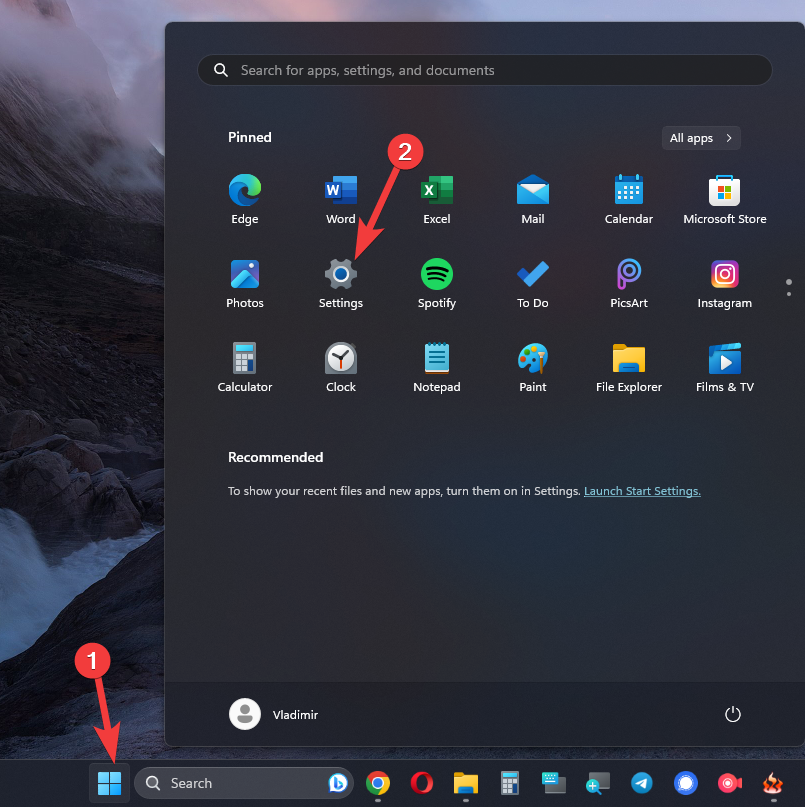 - Click the Start button and open the Settings app.