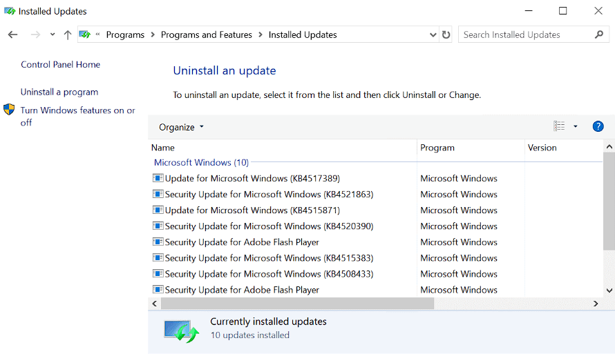 Use the steps below to reach your PC’s update history list and remove the updates mentioned above: