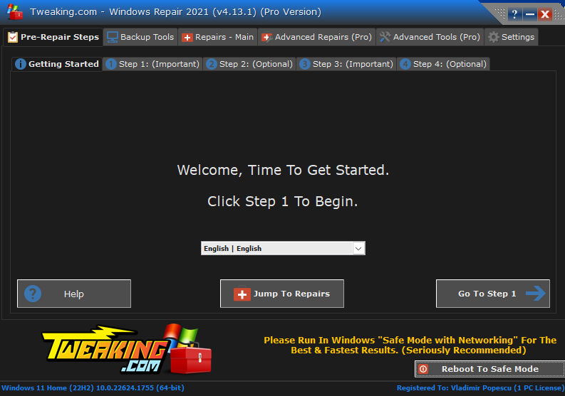 - Always run the Tweaking repairs in Windows Safe Mode – The best approach to ensure that third-party apps remain out of the way and to accelerate the repairs is to run in safe mode.